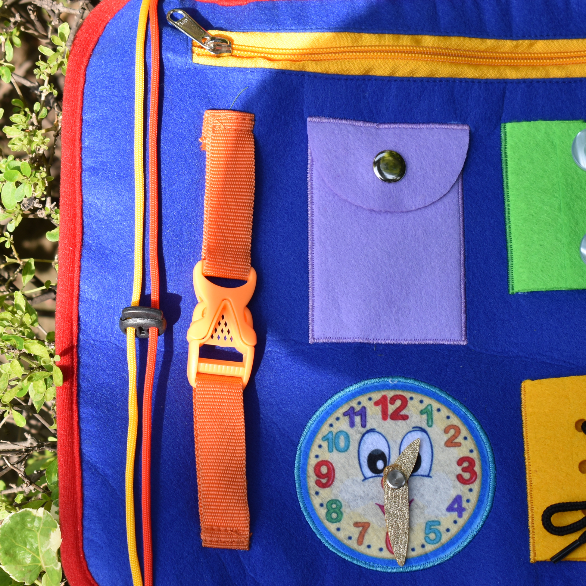 Sensory Exploration – Soft fabrics, varied closures, and gentle colours create a calm, tactile learning experience.