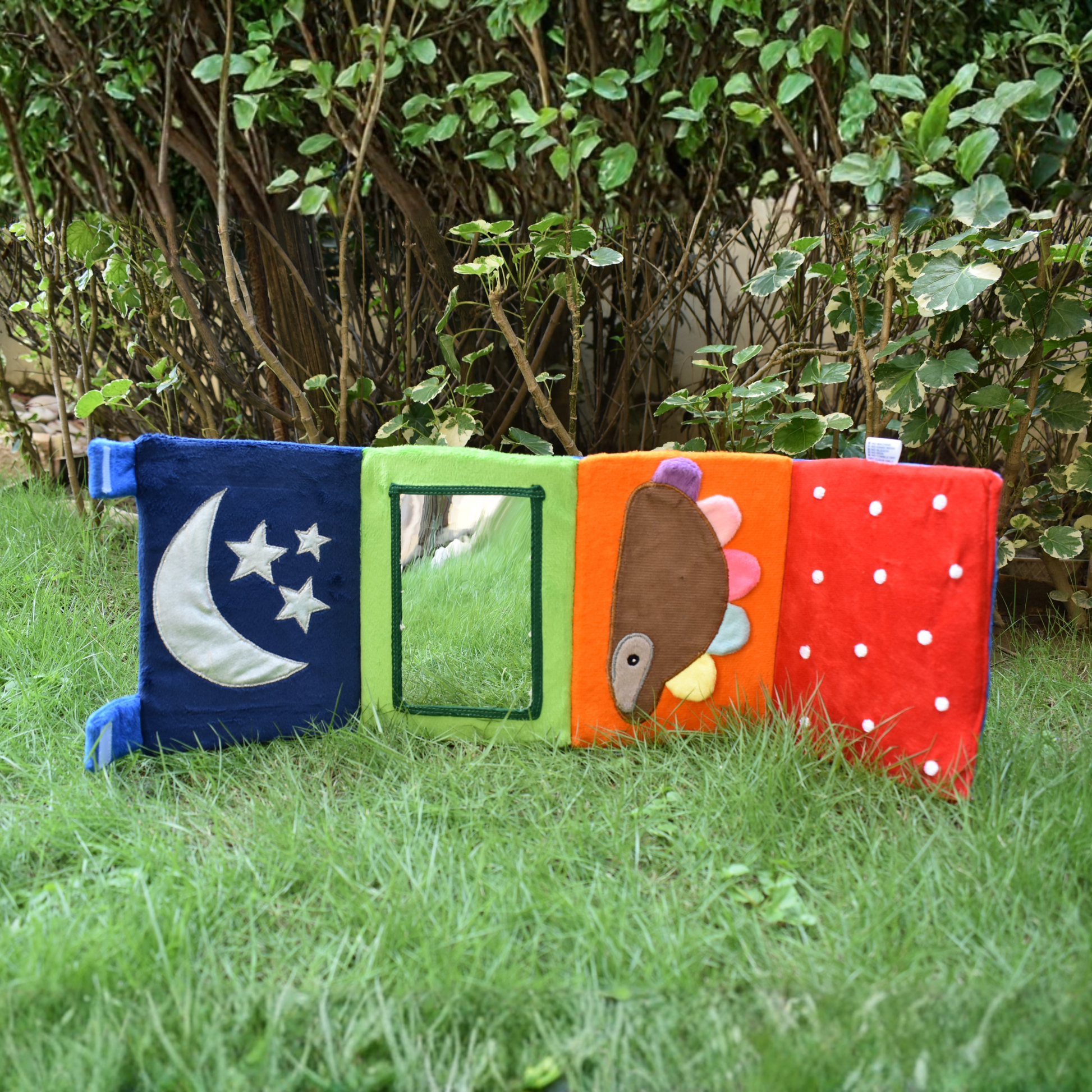 Set the scene: Place the mirror flat during tummy time or fold it into a triangle for upright play.
